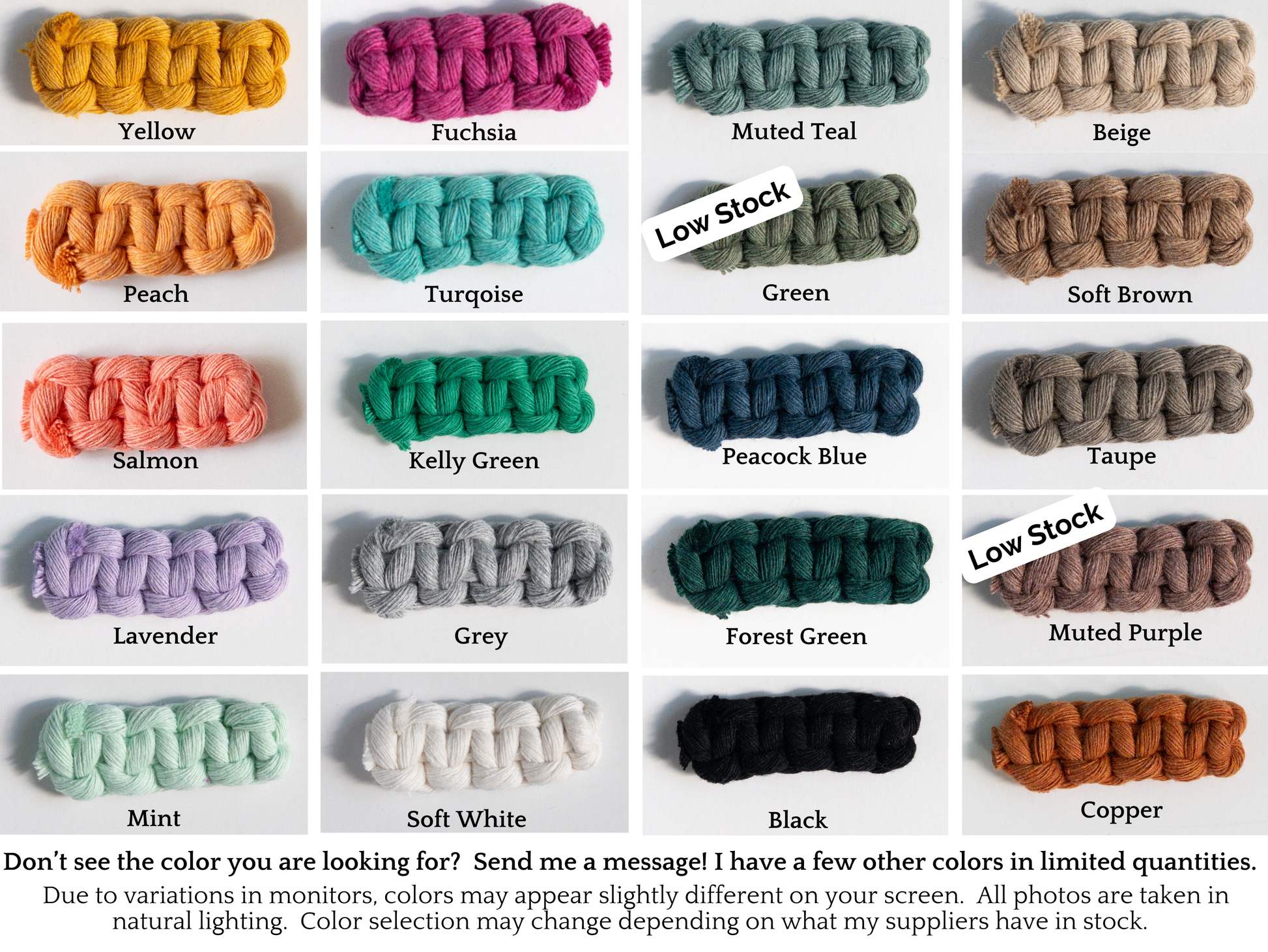 • Color options may vary occasionally depending on what my suppliers have in stock. If you do not see the color you would like, please reach out. I sometimes have colors not in the color chart in limited quantities.
