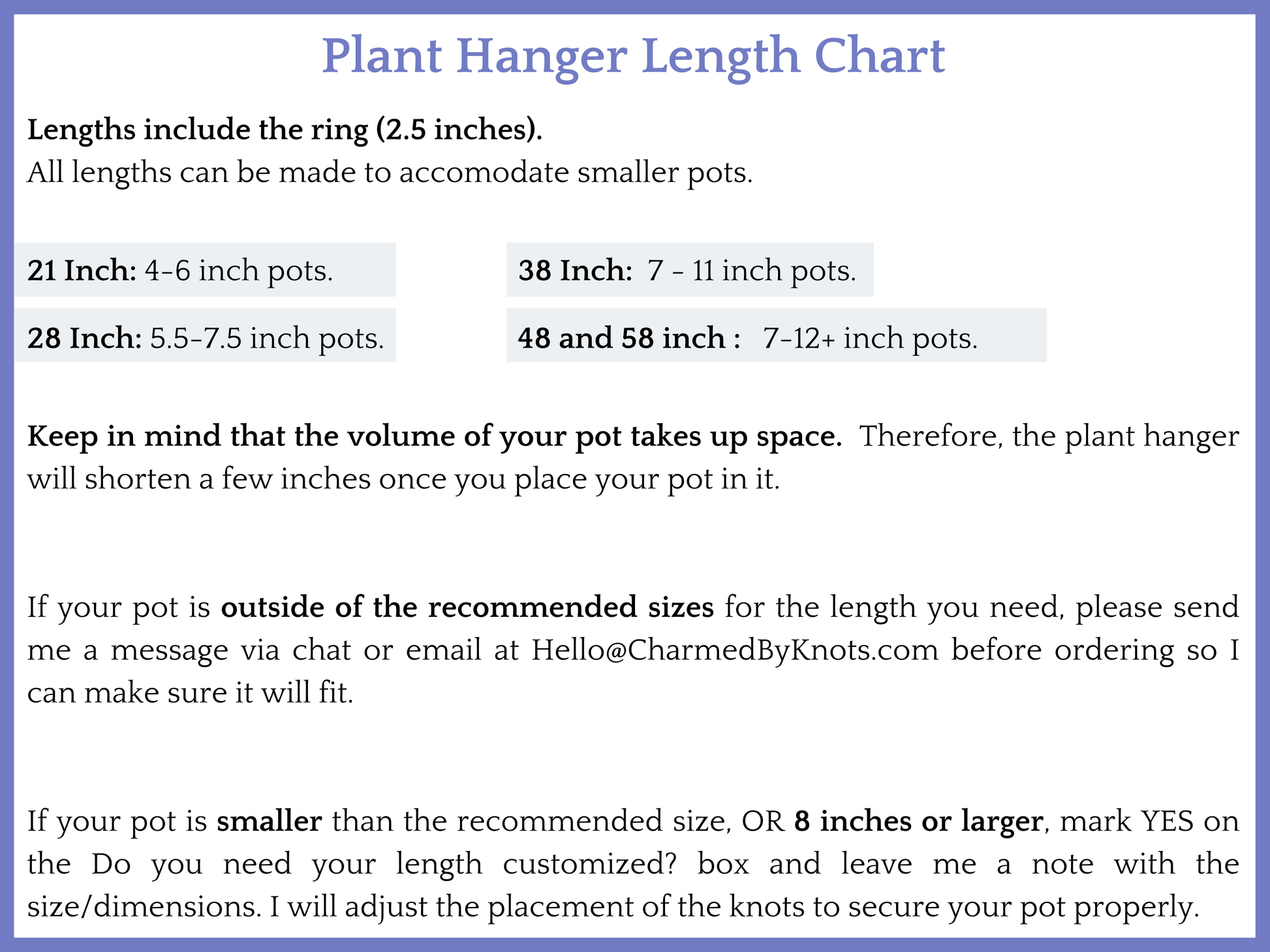 ✦ For the following lengths, if your pot is over 8 inches in diameter, please provide me with your pot dimensions in the Do you need your length customized? box so I can adjust the placement of the knots. This will ensure that your pot is secured by the knots.